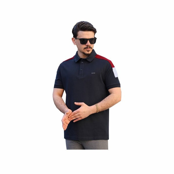 - Single Color Short Sleeves Polo for Men, with Double Color Horizontal Line Design in Shoulders-Sleeves in 10 Color Combinations