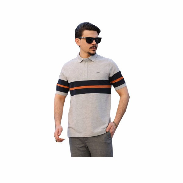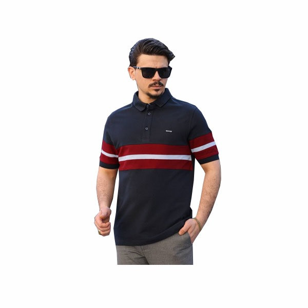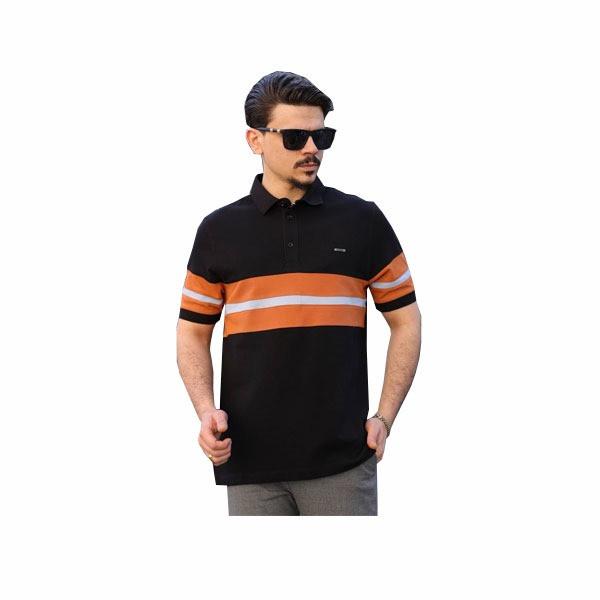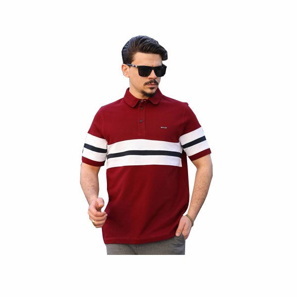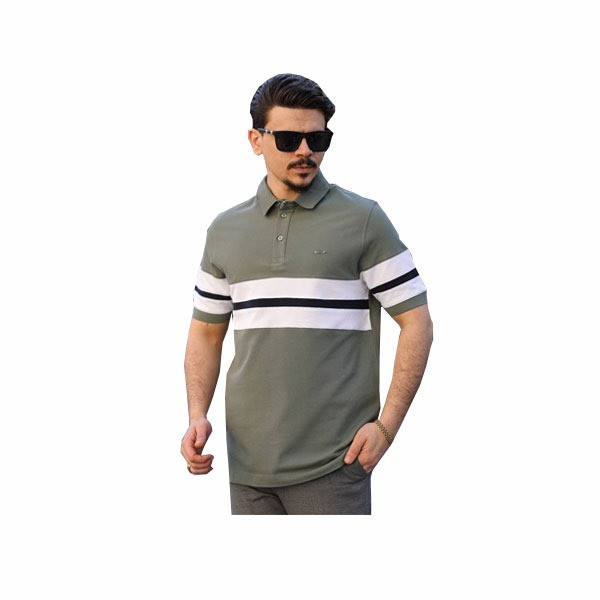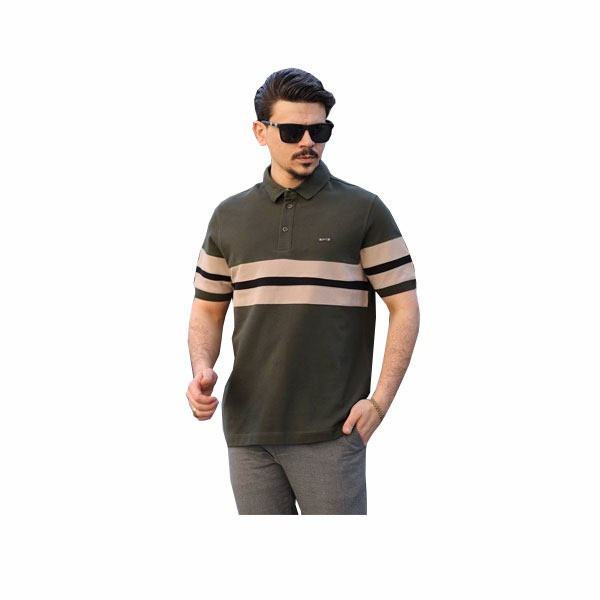 - Single Color Short Sleeves Polo for Men, with Double Color Horizontal Line Design in the Chest