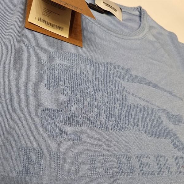 - In Gray & White Color with Big Burberry Logo Imprinted in the Chest