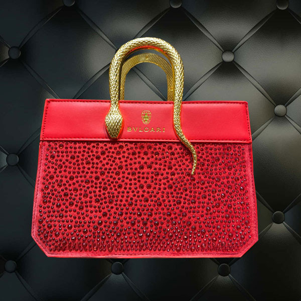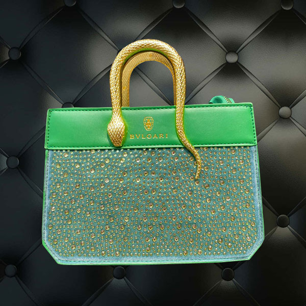 Bvlgari Logo Tote (Style) Master Copy Women Handbag with Golden Color Snake Handle & Strass Decoration in Various Colors
