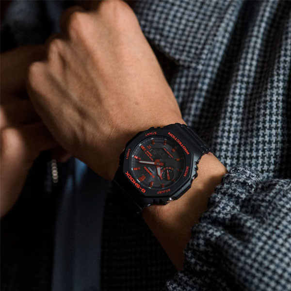 - The Casio G-Shock Black "Tough Solar" Digital-Analogue Watch is perfect for outdoor activities. Its oil-resistant, shock-resistant design protects against harsh elements, while its solar panel harnesses light from any source to power up to 8 months of energy. Its multi-dimensional face displays digital time that can be backed up with timekeeping from a built-in analog hand.