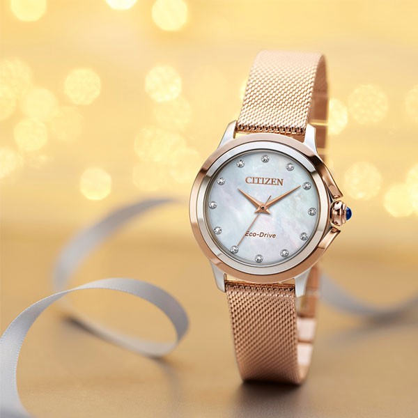 - The Citizen Ceci Diamond Collection. Inspired by jewellery with rose gold tone and stainless steel case finished with a blue spinel cabochon crown. Gold tone stainless steel mesh bracelet. Diamond set Mother of Pearl dial.