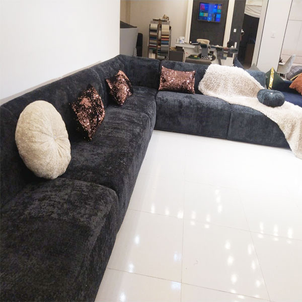 - Product: Elegant Bebeyi Fabric Corner Blue Black Sofa Lubiay Model Sprink of High Quality Sponge (price per meter)