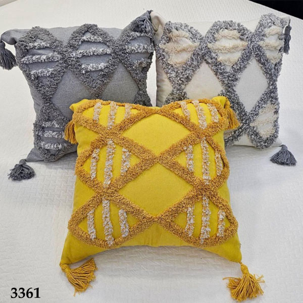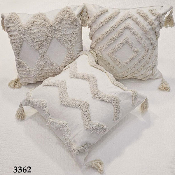 - Cases in pastel shades of gray or pink (rotten apple) or veraman with minimalist zig-zag designs, with neoclassical geometric embossed diagonal patterns, monochrome or two-tone gray with arzan gray in dimensions 45 x 45 cm.