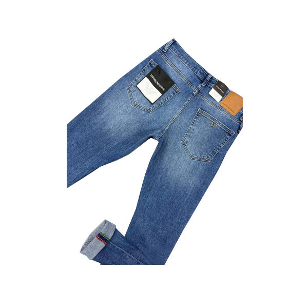 Emporio Armani Blue Denim Washed Out Color Jean Straight Line with Turned Patties for Men Model No. 20.26/5