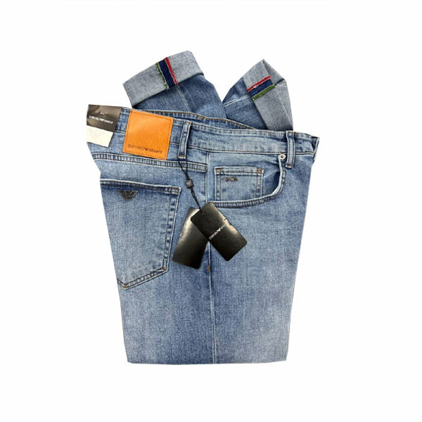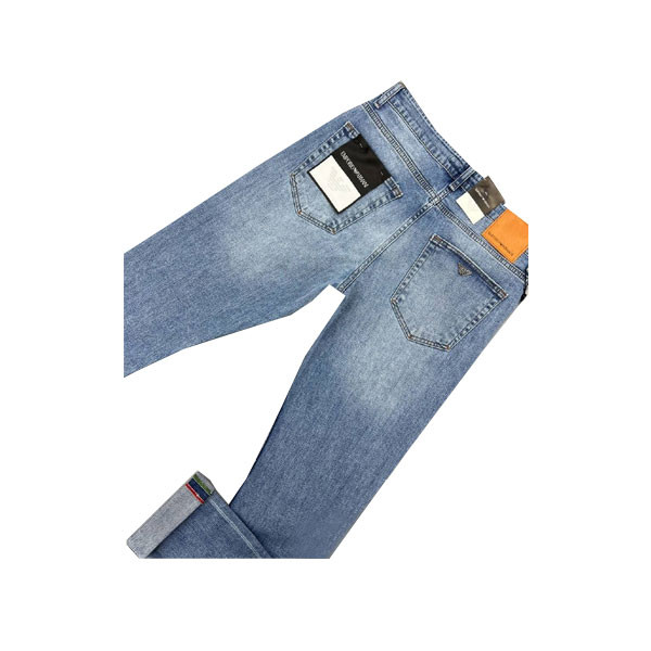 Emporio Armani Blue Light Washed Out Color Jean Straight Line with Turned Patties for Men Model No. 20.26/7