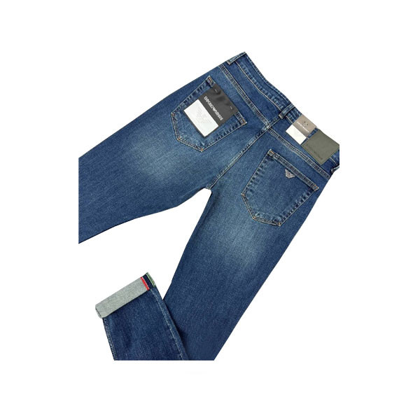Emporio Armani Blue Washed Out Color Jean Straight Line with Turned Patties for Men Model No. 20.26/3