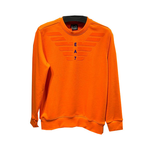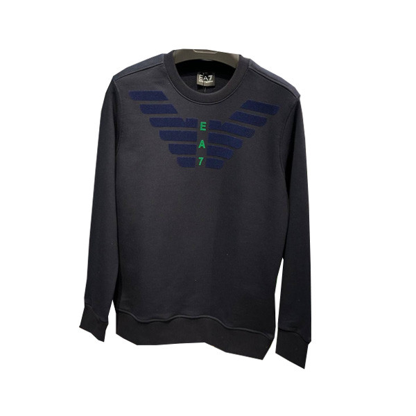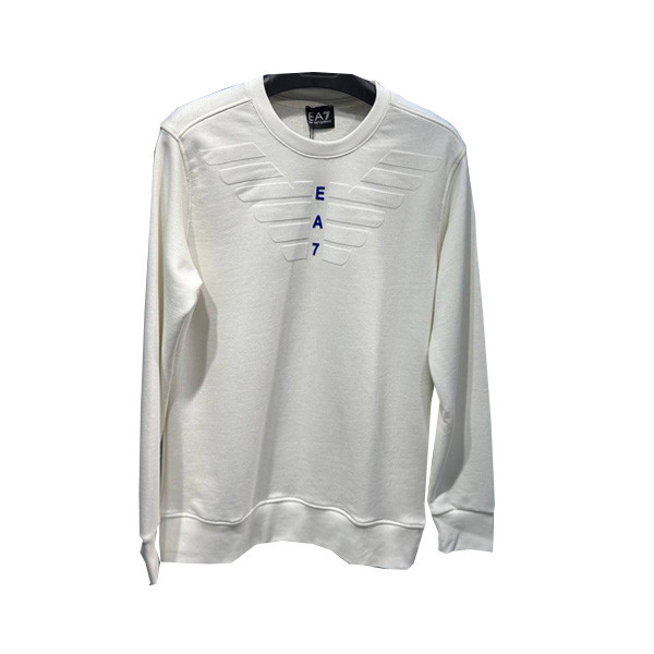 Emporio Armani Casual Fit Winter Blouse for Men with Big Emporio Armani Logo Graphic Print from Neck to Chest, in 4 Colors (Gray & Blue, Gray & Black, White, Orange)