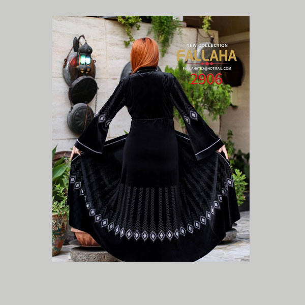 Fallaha New Collection Single Black Color Abaya with Black Beads Belt & Gray Embroidered Rhombus Shape Designs on 2 Shoulders & Abaya's Bottom Model No. 2906