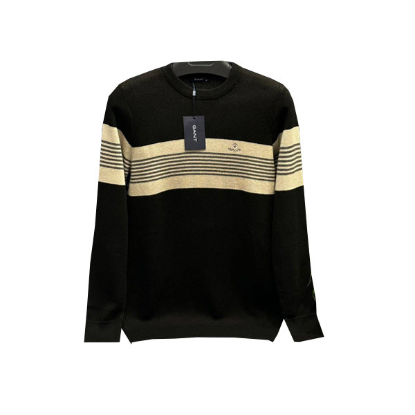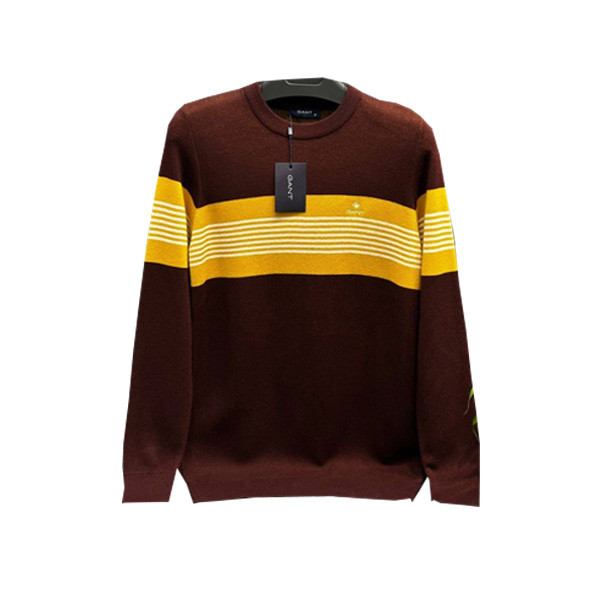 Gant Casual Fit Sweater for Men with Fat Horizontal Double Colored Lines in 3 Combination Colors (Bordeaux & Yellow, Gray & Brown, Black & White)