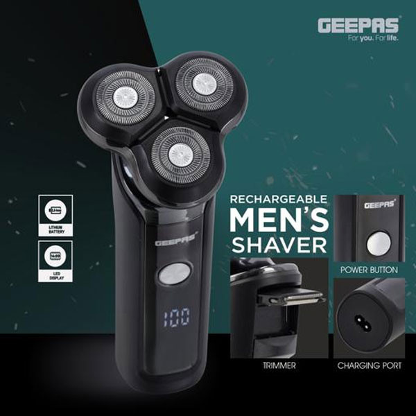 - This Geepas Rechargeable Men's Shaver comes with 3 floating heads shave in 4 directions, automatically adjusting to every curve of your face, neck and jaw, durable, close-cut blades give you a reliably close shave.