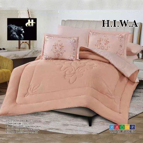 Hiwa Set of Double Face Duvet Cover & 2 Pillow Cases in 6 Colors (Gray, Green Dark, Green Light, Blue Black, Pink & Brown) with Flowers Designs