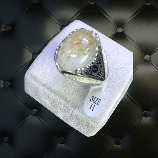 Italian Hand Made Silver Rings, Decorated with Big Natural Stone & Elegant Side Designs, 12 & 11 Size, for Men