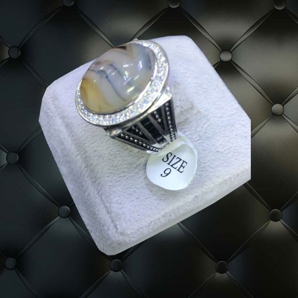 Italian Hand Made Silver Rings, Decorated with Big Natural Stone & Elegant Side Designs, 9 & 11 Size, for Men