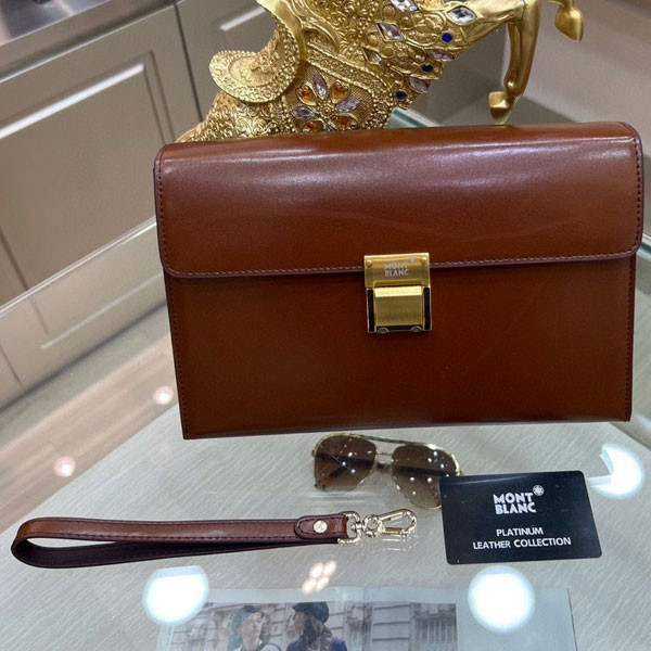 Mont Blanc Set with Platinum Leather Collection of Unisex Leather Small Back with Central Clasp in Black & Brown Color & Leather Strap + Sun Glasses