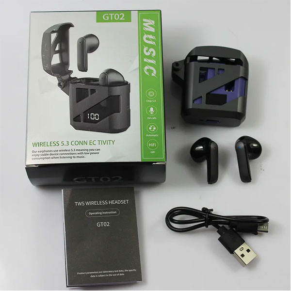 - GT02 Mecha TWS Wireless Headphones Earphone Bluetooth Touch Control Noise Reduction Stereo Game Earbuds Headsets