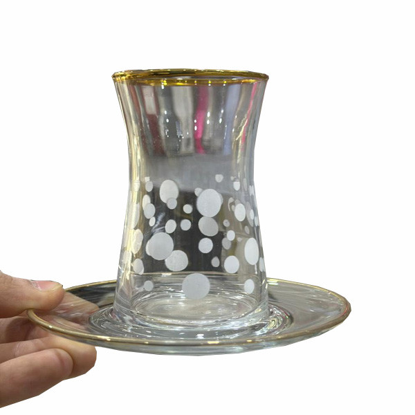 - Brand: N/A - Model Number: N/A - Product: Set of 6 Harmony Istikan Glass Tea Cups Accompanied with Small Glass Cup Plates - Set of 6 Harmony Istikan Glass Tea Cups Decorated with Golden Colored Details & Various White & Golden Color Designs Accompanied with Small Glass Cup Plates (in 6 Different Designs) - Luxury Pilates Set - Serve your guests with the finest tea - Factory of the finest pure glass - Golden Font - 6 pieces.
