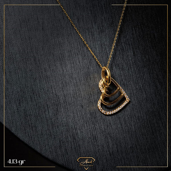 Yellow Gold Necklace 24K, 45cm long Decorated with a triple Golden & Platinum Heart, 4.13gr, for Women
