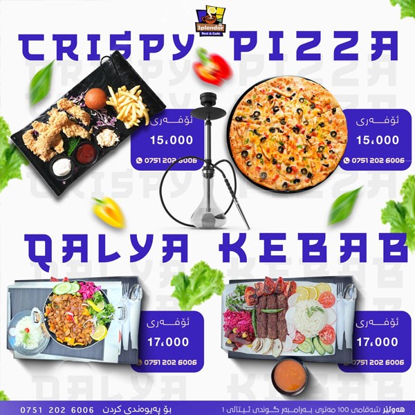 Visit our restaurant & cafe and taste delicious burgers, shawarmas, kebabs, pizzas, salads, fried chicken dishes & tasty deserts.