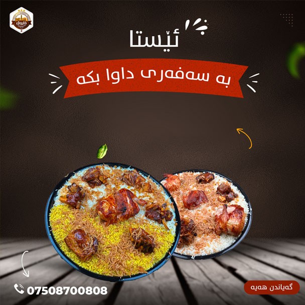 In our restaurant you can taste a great variety of delicious dishes & foods, from kebab, mix grill, soups, pizzas, shawarmas, sandwiches, traditional Kurdish food to fresh salads!